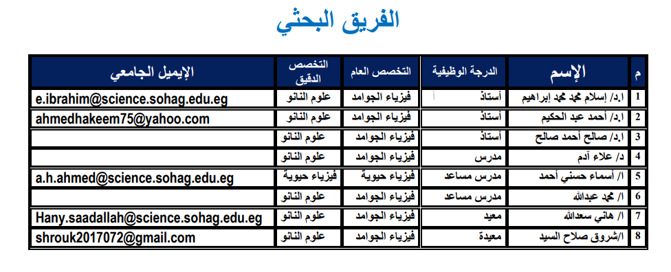 - أ.د/ نعمات زكي محمد نجم (أستاذ متفرغ) …….فيزياء تطبيقات البلازما