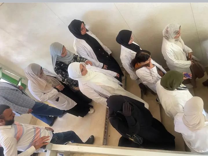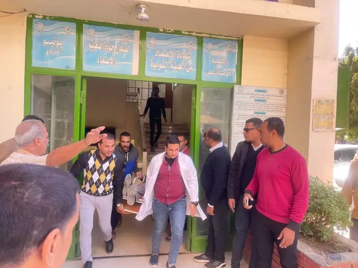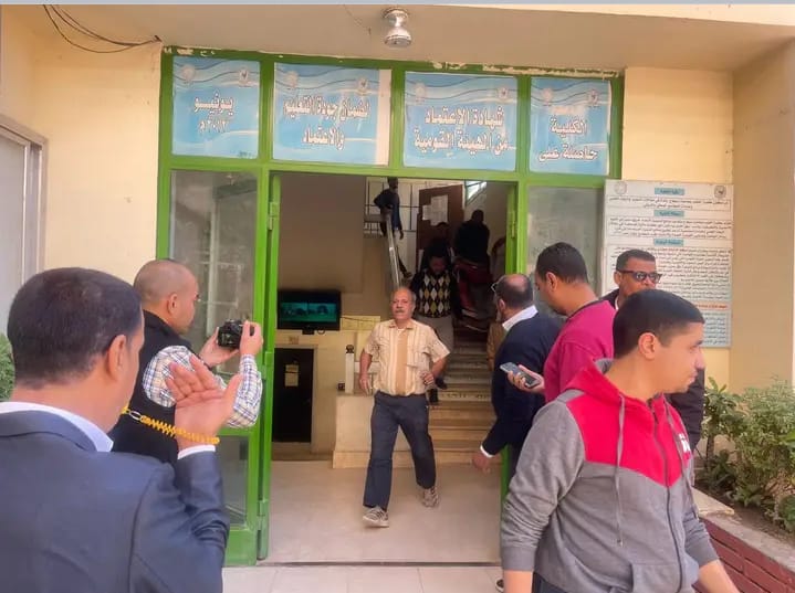 Within the framework of the presidential initiative “Bedaia”, and under the auspices of His Excellency the Minister, Prof. Dr. Hassan Al-Noamani, President of Sohag University, and His Excellency Prof. Dr. Hazem Al-Mashnab, Dean of the Faculty of Science at Sohag University, and the supervision of Major General Tariq Hafez, Director of the University Security Department, in the presence of the Medical Administration and ambulance. Security, Safety and Crisis Management Unit, headed by Prof. Dr. Raafat Al-Khatib and his deputy Dr. Ali Muhammad Ali and the Crisis Management team at the Faculty of Science, organized an evacuation experiment maneuver according to the followed evacuation plan, which the faculty members had been trained on several times previously, where the emergency alarm whistle was sounded and the entire building was evacuated from faculty members, administrative staff and students and directed to the designated assembly points in the presence of the vice deans, department heads and the college secretary, which contributed to the success of the experiment, which took a record time to evacuate the entire building.