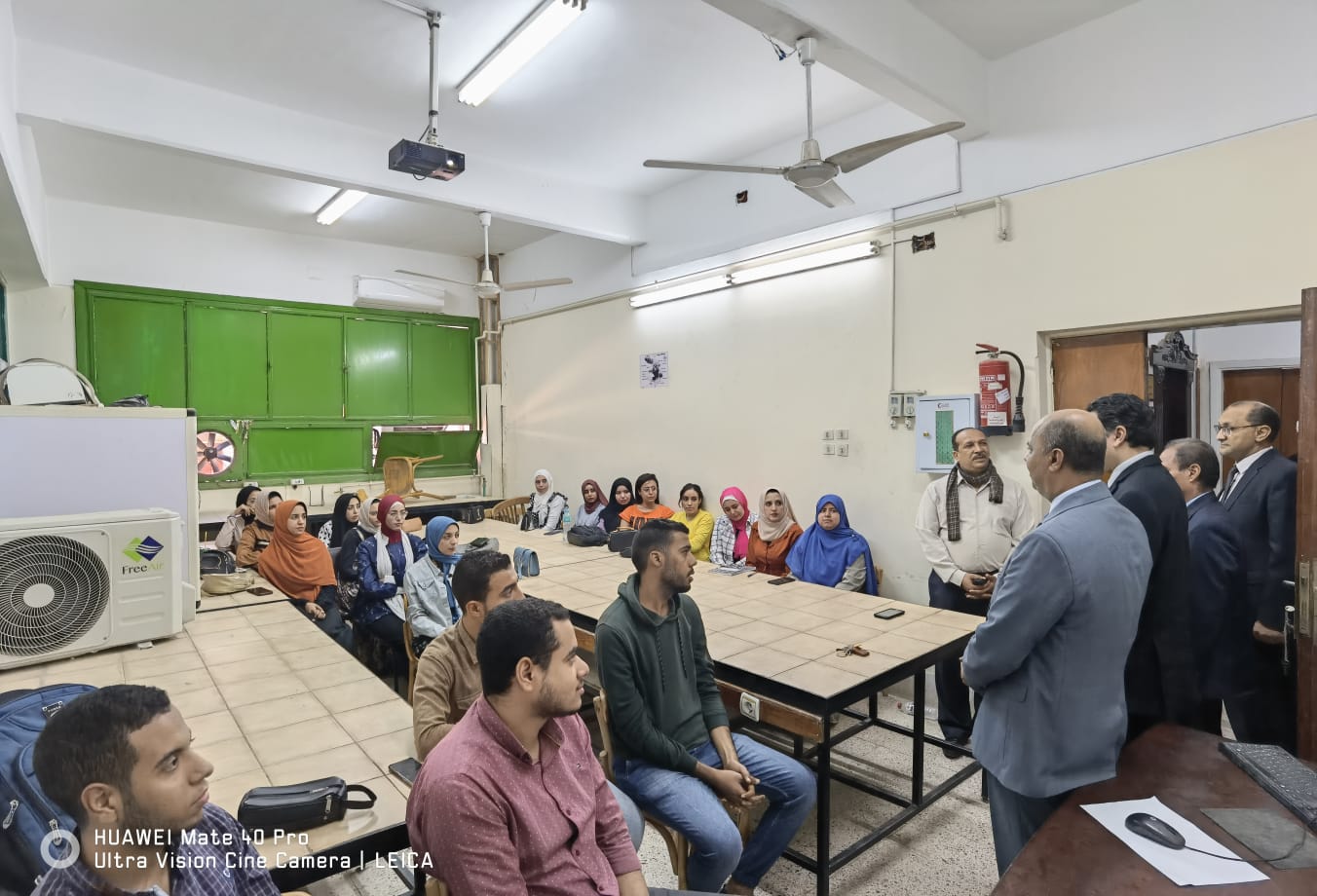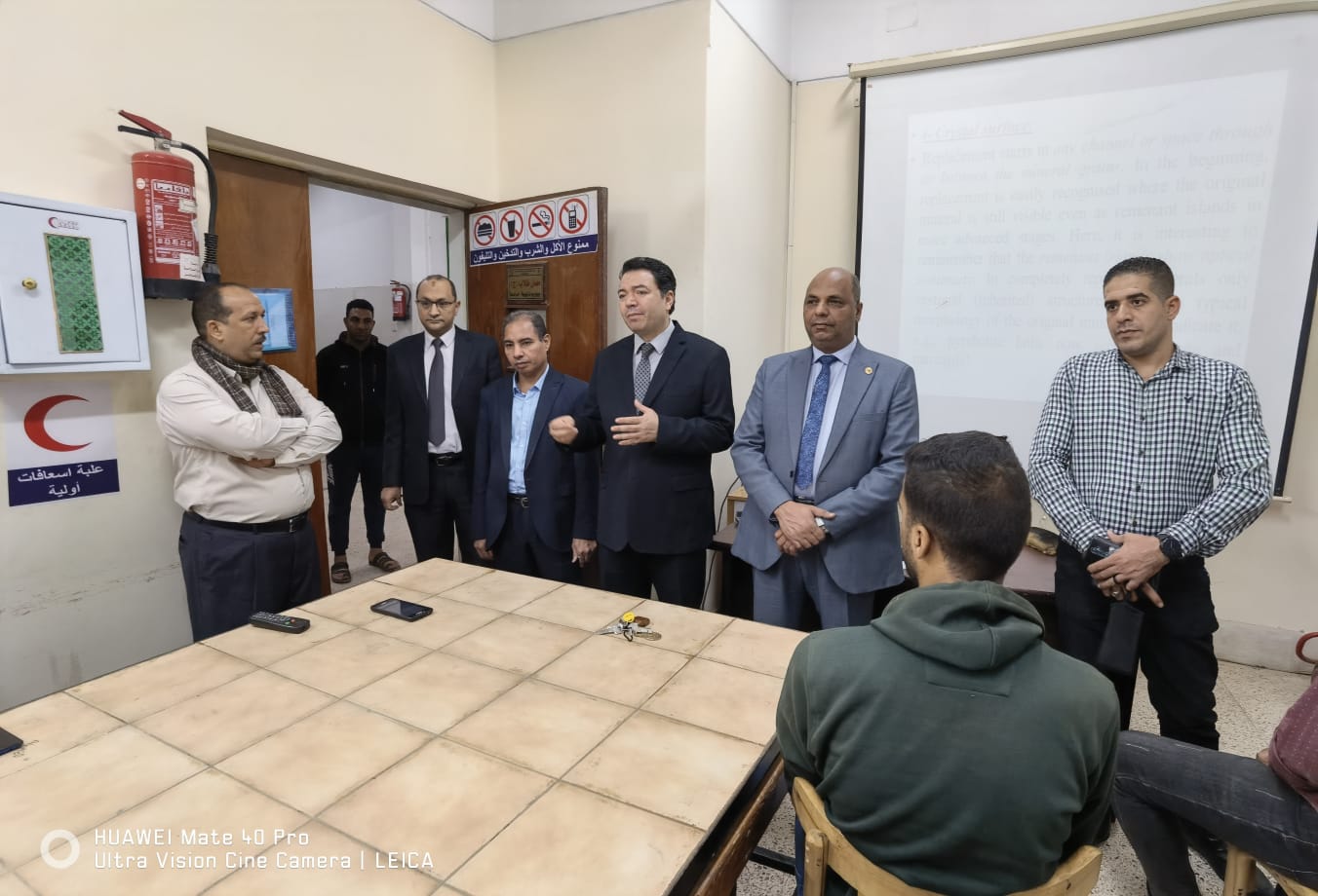 Within the protocol of cooperation between university of Sohag and the Enterprise Development Agency in Sohag for Medium, Small and Micro and projects in the field of leadership, on the instructions of His Excellency Prof. Mustafa Abdel-Khaleq, President of Sohag University; Dean of the faculty of Science Dr.Hazem El-Meshnip and vice Dean have met Mr Usama Mahmoud deputy director of the Enterprise Development Agency in Sohag for Medium, Small and Micro and projects and go through a number of lectures courts and practical lessons laboratories to introduce all the financial and non-financial services provided to young people.