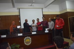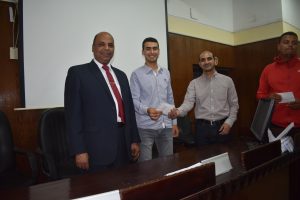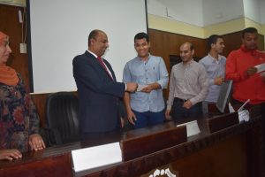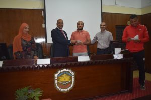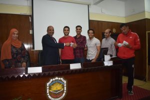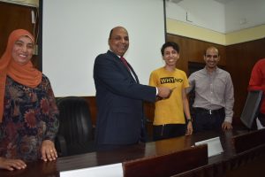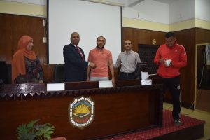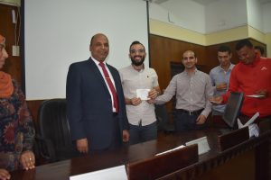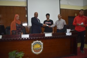 The Department of Sports Activity under the patronage of youth organized a ceremony to distribute prizes for sports competitions and tournaments, which it held during the first academic year 2021/2022 like (football – volleyball – table tennis for male and female students – Festival of various games) in the presence of Dean Prof/Hazem Al-Mashnab and Dr/Mahmoud Abdel-Alim, General Coordinator of Student Activities, and Ms/ Randa, Director of Youth Care, and Mr/ Abdel-Aziz, Director of Sports Activity Department
